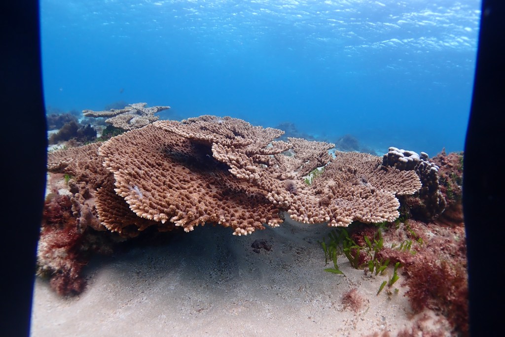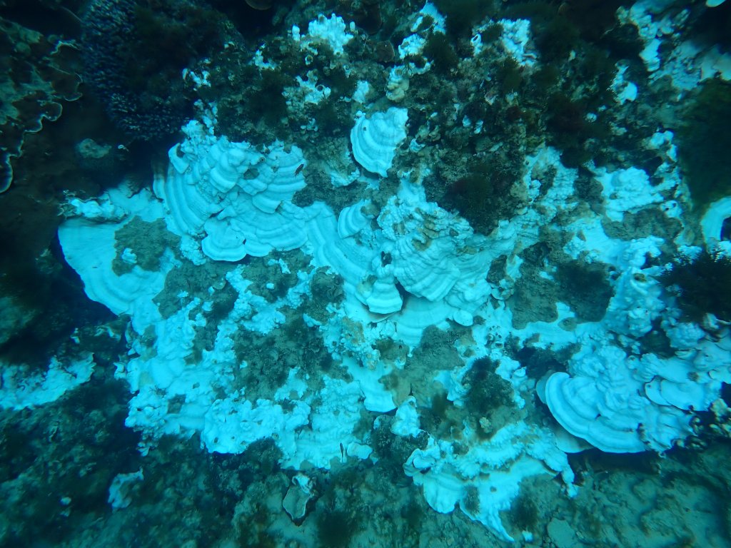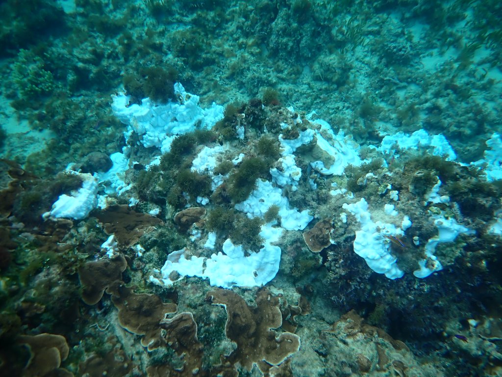 When corals fully bleach, they have expelled symbiotic algae from the coral tissues and the white skeleton beneath is clearly visible.